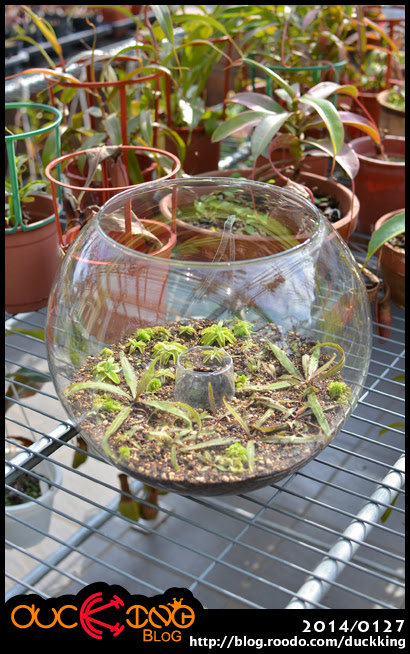 按照原先的規劃是是依據捕食方式的不同,來區分出陷落派、沾粘派、吸入派和閉合派等四個缸,後來因為安全的因素博物館方要求缸內不能有積水,只好將原本要展出的水生黃花貍藻給取消,改成隨意搭配的食蟲植物來當作內容物囉~呱!為了避免在館內施作會有道具不足的困擾…也希望美蝕們能夠在植入之後適應休息一陣子,小鴨王事先就把空的玻璃缸給帶回家中處理啦!