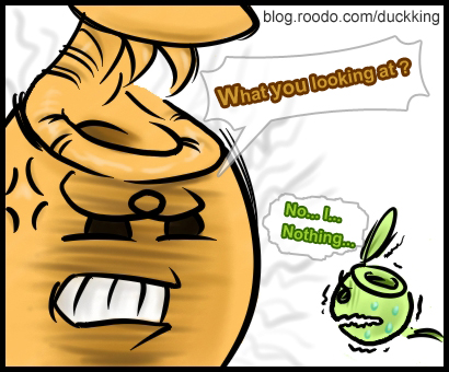 呱哈哈~相信聰明的鴨子們應該已經發現了吧?!其實寶特瓶豬兒誤會二齒豬兒了啦~呱哈!也許是老天的玩笑或是試煉吧?擁有天使心腸的他…不但善良又極愛熱心助人!可是…由於天生就擁有超乎常豬的大塊頭身材!再加上那宛如阿修羅般的極惡臉譜!使得他總是被其他豬兒視為惡魔而避之不及,單純又苦惱的他始終不解為何大家見到他總是逃之夭夭!百思不解的他日日夜夜都在苦思這個問題…長期的失眠…讓他那原本就已經很恐怖的雙眼充滿血絲,變得更加嚇人!就這樣…一直惡性循環下去囉~呱嗚!