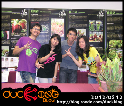 話說這張照片是小鴨王在佈展完之後和宜大的同學們合拍的,當時雖然時間已經來到非常晚了…可是大家依舊精力百倍喔!那麼咱們就從這張照片開始一起回憶展覽當時的盛況吧~呱哈!話說~小鴨王在五月九號早上就已經提前到宜大來佈展囉!本來是要將參展的植物直接用車子載到展出教室的說~可是由於早上還有一些同學們要使用教室來上課…所以只能夠先暫時把美蝕們擺放到教授的研究室中囉~等到下午四點以後小鴨王才和同學們一起把植物搬到展場教室,開始佈置展場並且將參展植物擺放定位囉~呱!也許是參展的植物實在是非常少見吧?!當我們在搬運和佈置的過程中…一直都有很多人來詢問說!由於擔心參展植物的安全控管和佈展的進度是否順利…最後只好進行管制…請來賓明天正式開展的時候再來囉!呱哈~