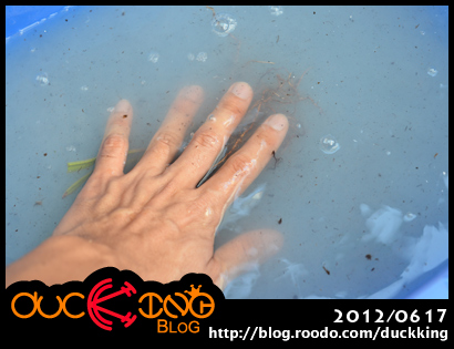 不過可別因為有蟲體漂浮到水面而就輕敵了喔!呱嗚~這根粉介和其他介殼蟲一樣體表都有一層粉臘的物質保護他們,就算被水淹也不會溺死或是窒息死亡喔!呱呼~想要好好消除他們就必需要用上一些特殊的藥水,當然!小鴨王一直都不建議蝕友們去使用有毒性的農藥,而是盡量使用沒有毒性又能夠輕鬆取得的物品來當使用,在此小鴨王是使用花市和農用資材行可以購買到的藥劑,也就是專門針對介殼蟲來處置的無毒有機藥劑,這種藥劑通常都需要加水稀釋!使用起來就和肥皂水很像,蝕友們如果不知道要去哪裡購買藥劑的話也沒關係…可以使用一般家中常用的塊狀肥皂搭配清水戳揉後,就可以製造出一盆去除粉介殼蟲非常好用的藥水囉~呱哈!至於肥皂水的濃度部份…並不需要太過刻意去計算,只要戳揉到拍打水能夠產生泡泡摸起來會滑滑的就可以啦!接下來就是要將瓶子草整株連同根部一起浸泡在肥皂水中,讓肥皂水去破壞根粉介蟲體表的那層粉狀物體,如果蝕友們擔心效果不夠強的話也可以加入一些苦煉油,來加強藥水的滲透和展著性喔!(濃度只要500-1000倍即可)通常只要完整浸泡約30分鐘左右…小蟲們就會投降了說~但是為了能夠讓寄宿在根部的根粉介蟲兒們徹底死心分離,小鴨王都會建議蝕友們能夠泡到1個小時左右啦!呱哈~