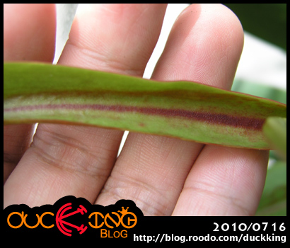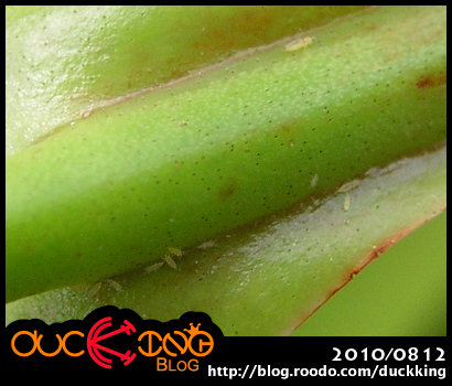 薊馬非常喜歡在植株皺摺凹陷處群聚,一旦發現這些地方有紅色的疹子或斑塊…就要立刻進行搜尋和清理的工作囉~呱!PS: 薊馬的文章在網路上頗多,只要搜尋一下很容易就找得到喔!