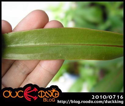 不過…這些事情再怎麼做也都是有個極限啦~有時候小蟲就是會隨風而來!這時越早發覺越好處理喔!如果每天都要看頂芽葉背是否有這些小蟲的話~恐怕鴨王有四個眼睛都不夠用!所以咱們可以從植物葉面的外觀特徵和表現來判斷!這顆植株是否有受到這些臭薊馬的侵襲囉~